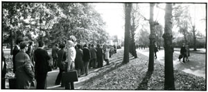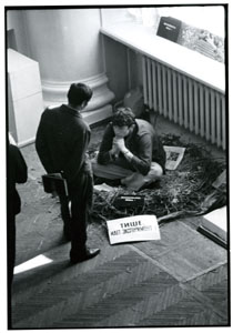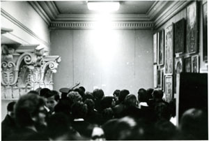 After the Bulldozer exhibition (The First Autumn Open-Air Exhibition) in 1974 in Moscow, followed by The Second Open-Air Exhibition in Izmailovsky Park, Moscow, received much coverage in the Western press, and as a response the Soviet government allowed an exhibition at the House of Culture, VDNKh exhibition grounds which was open to all the artists (as long as they had a Moscow residency permit). In August of 1975 several artists approached my mother, Tatiana Kolodzei, and Leonid Talochkin to help in the organization of an exhibition and work with an installation at the VDNKh, dedicated to the anniversary of the Bulldozer exhibition. On August 29th, 1975 the permit from Central Administrative Board of Culture of the Executive Committee of the Moscow Council was issued, allowing an exhibition from September 20 to September 30, 1975. Originally, the only condition was that artists could not violate the Criminal Code of Russian Soviet Federated Socialist Republic regarding insults to the symbols of the Soviet state (the coat of arms and the flag, or to national heroes), and the prohibition against pornography. A total of 146 artists, working in various media, participated and more than 500 works were showcased. The administration created intolerable conditions for organizers and participants of the exhibition. While delivering the artworks artists experienced hours of delays because the authorities demanded that participants show their Moscow residence permit before being allowed entry. Each badge was numbered and had to be signed by a senior police officer. The administration delayed distributing admission badges; eventually my mother received the badge with number 1. During the installation, all the windows of the recreation center where the works were to be displayed were tightly closed, even though it was very hot outside. Artists and workers who left for their lunch break had long delays to get back into the exhibition. The same policy applied during the exhibition, the participants had constant problems in getting in and out of the show, and the number of complimentary tickets was less than promised. On the evening before the opening the censorship commission of the State Department of Culture, without any explanation, removed 38 works from the show. In protest all of the artists removed all of their works. The exhibition opened and then immediately closed, and the artists who gathered around the exhibition were surrounded by police mounted on horses. After several hours of debate a compromise between the artists and authorities was reached, which allowed for the removal of 16 works. On September 21st, the exhibition finally opened to the public. But the struggle with the authorities, many of whose representatives were well physically prepared and dressed in tight-fitting muscle-hugging knit suits and identical shoes, continued daily until the end of the exhibition. The peak of controversy was the work Hippie Flag by the art group Hair and the installation Hatch Our Eggs! by Roshal-Skersis-Donskoi (later known as Nest group). Despite the fact that, at the request of fire fighters, the nest from green willow branches had been almost floated in anti-fire structure, the installation part was thrown out by firemen because of its supposed inflammability. The censored works were confiscated for the duration of the exhibition and returned only after the exhibition was dismantled. Despite there being no public announcement and lasting for less than two weeks, there were long lines of people wanting a glimpse of nonconformist art. The First Autumn Open-Air (The Bulldozer) Exhibition in 1974 in Moscow, followed by The Second Open-Air Exhibition in Izmailovsky Park, Moscow; the Gaz Palace of Culture, Leningrad, in 1974; the Nevsky Palace of Culture, Leningrad, in 1975; the Palace of Culture Pavilion at VDNKh, Moscow, in 1975; and numerous apartment exhibitions in Moscow and Leningrad, all served to reignite hope. These were significant events in the history of nonconformist art, raising its awareness and showcasing the determination of artists to express themselves freely, even in the face of repression.
